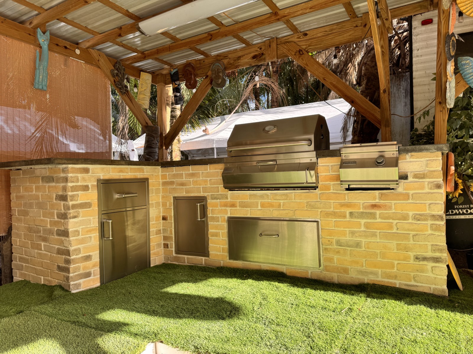 Enhance BBQ islands and outdoor entertainment spaces with beautiful brick veneer surfaces.